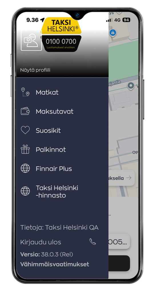 Kun olet kirjautunut sisään, voit tutustua uuteen sovellukseen ja tilata taksikuljetuksen vain muutamassa sekunnissa.